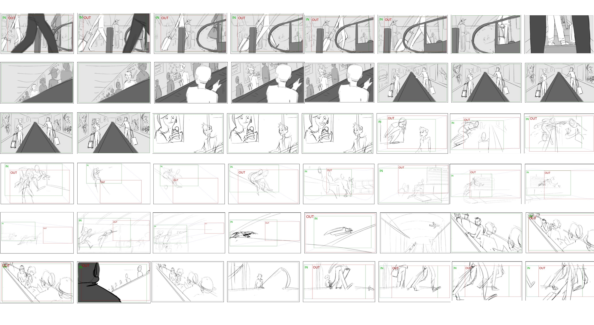 Décollage de nos souvenirs Dans un aéroport, deux anciens amoureux se recroisent. Dans les affiches autours d'eux leurs souvenirs reprennent vie, mais le temps va bientôt reprendre son cours Romantique, Lent ‹ Storyboard ›